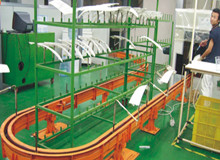 汽車中子板機器人涂裝生產線采用積放輸送鏈輸送線,將中子板輸送到每一道工序上。